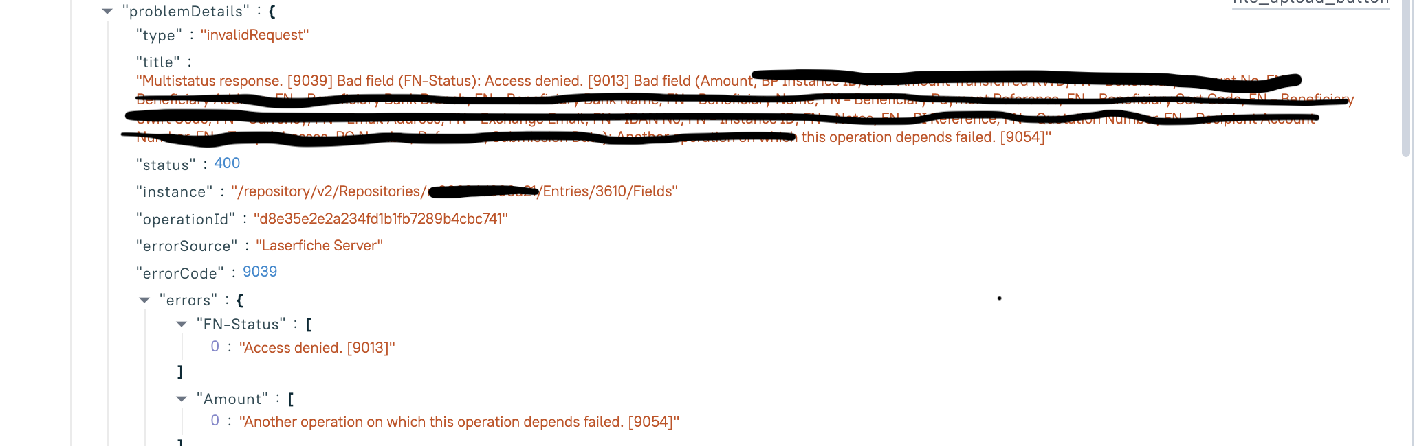 Greetings all, I am stuck with a step with using the Laserfiche API for quite some time and cannot figure out what's the issue.