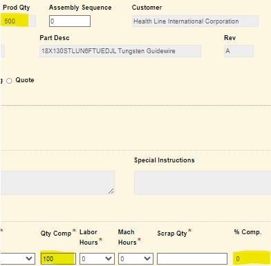 The Table is called "My_Time" with (2) fields inside involved: Qty Comp & % Comp.