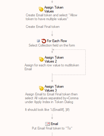 Then you need to run For Each Row activity on collection fields and assign the user names on the token