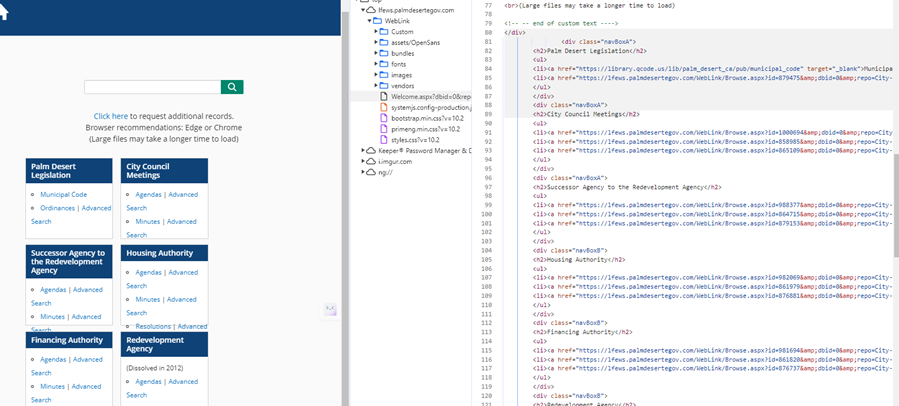 I cannot stress the importance of this enough - even though you're just trying to update a few links, these customizations were made outside of WebLink Designer so there are no configuration safety or validation checks. This type of direct UI customization in WebLink is fairly common so I don't want you to think this (very nice looking) setup is bad or wrong or anything, just that you should proceed with caution if you don't know how it was implemented in the first place.