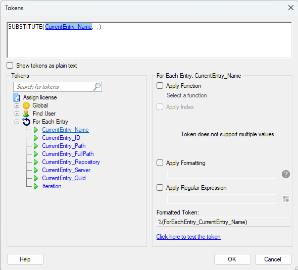 I've wondered about this, and decided today that it was worth a discussion. I assume Token Calculator was originally designed for math functions, but it has moved beyond that. "Substitute" is a very useful function, for example; I used it today to replace a substring in a series of entry names. In order to do that, however, I had to manually create a token via a separate "Assign Token Values" activity, set the "For Each Entry -> Current Entry Name" to it, and then reference that token.