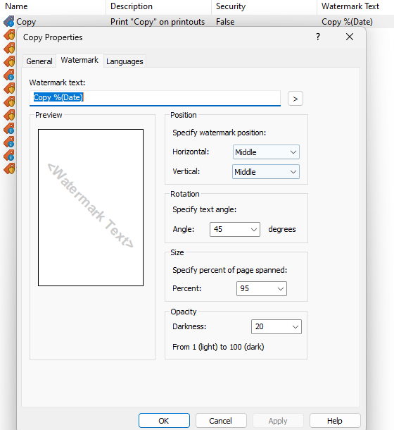 I am attempting to add a group watermark for documents that are exported, showing they are not the original (copy). However, it is not working. Is this because the documents are PDFs? If this is the case, is there a way to add this watermark (or stamp) to documents exported? Thank you in advance for your insight!
