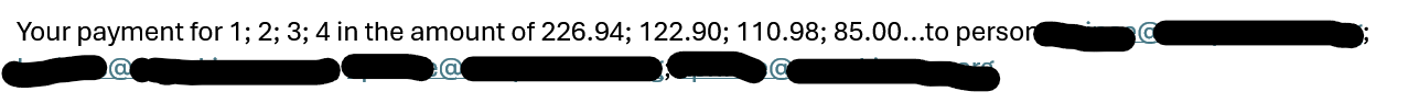 Your payment for {/dataset/Batch_Warnings/Warning_Number} in the amount of {/dataset/Batch_Warnings/Amount}...to person {/dataset/Batch_Warnings/Email}