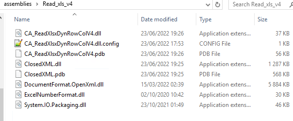 For my projects that need to use Closedxml, iTextSharp, or other files, I create custom activities that have the advantage of locating all the binaries in the same folder.