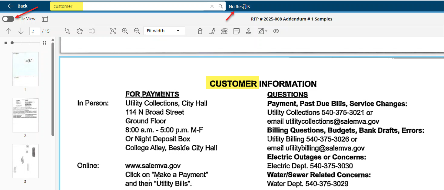 Lastly, you are in the file view (viewing as a pdf) and the search you are using is the embedded adobe reader search, so none of the above options will actually impact that. You can tell this because that's an adobe reader toolbar, not the Laserfiche document viewer toolbar. It will only be able to search on text if the PDF has an embedded text stream, which is a property of the initial PDF itself, not generating text through Laserfiche. Having generated pages you want to toggle to the page view and then Laserfiche search will be used for search operations.