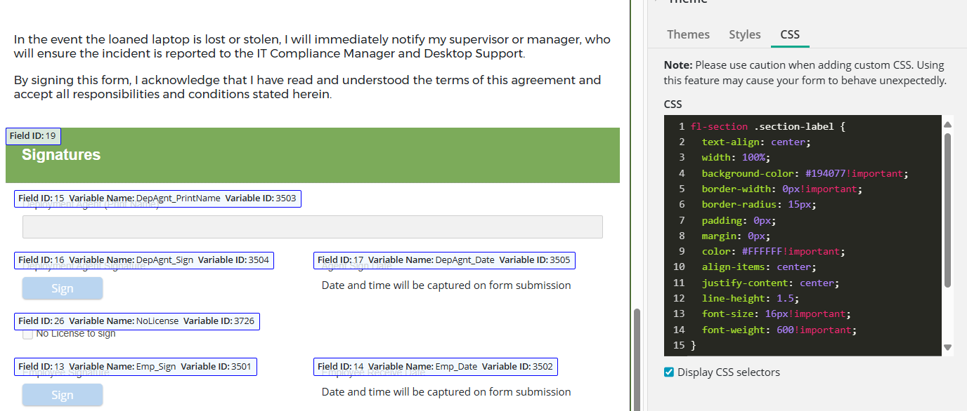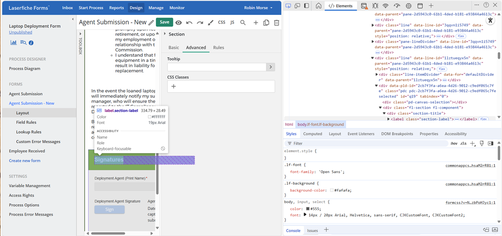 The version number you listed, 11.0.2311.505585, is Forms 11 Update 5. I've been doing form headers with centered text and several other formatting changes since Forms 11 Update 3, so it can be done.