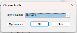 What is the issue that occurs after you choose a profile? I do think that the prompt is from New Outlook, but I would expect that selecting the profile would allow you to continue.