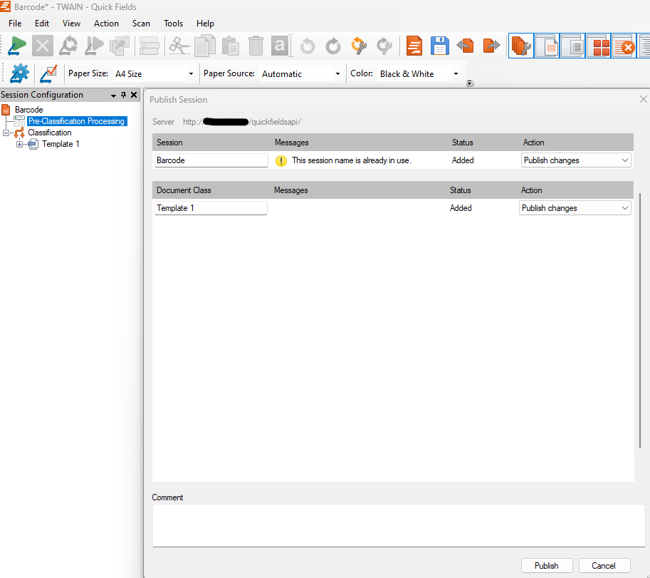 I created a template in QF that uses pattern matching tokens to save scanned documents. When I run it in Quick Fields, I have no issue. I published the session to the QF server so I can use it in the QF Scanning application. When I run it in there, all I see are variables names like %(dept name), %(file contents) etc. They're the names of the variables I'm using in the pattern matching step inside Page Processing. I can see the session in the LF QF admin console and it's not showing any errors. Could someone provide insight as to what I'm missing?