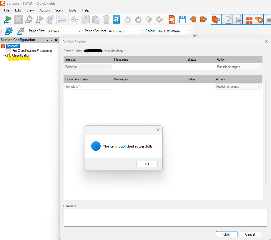Sorry for the delayed response. Currently, I've run into the issue where it publishes the session but within the session, the Documents Classes tab is blank. My account has full admin access.