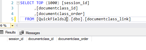 In the database, the session gets created but the [QuickFields].[dbo].[documentclass_link] doesn't have anything.