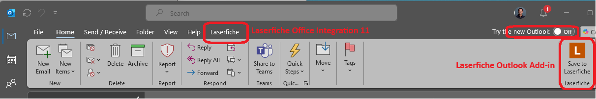 Laserfiche Office Integration 11 is not compatible with New Outlook for Windows - Knowledge Base