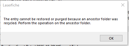 We are getting this message when trying to purge some entries from the Recycle Bin.