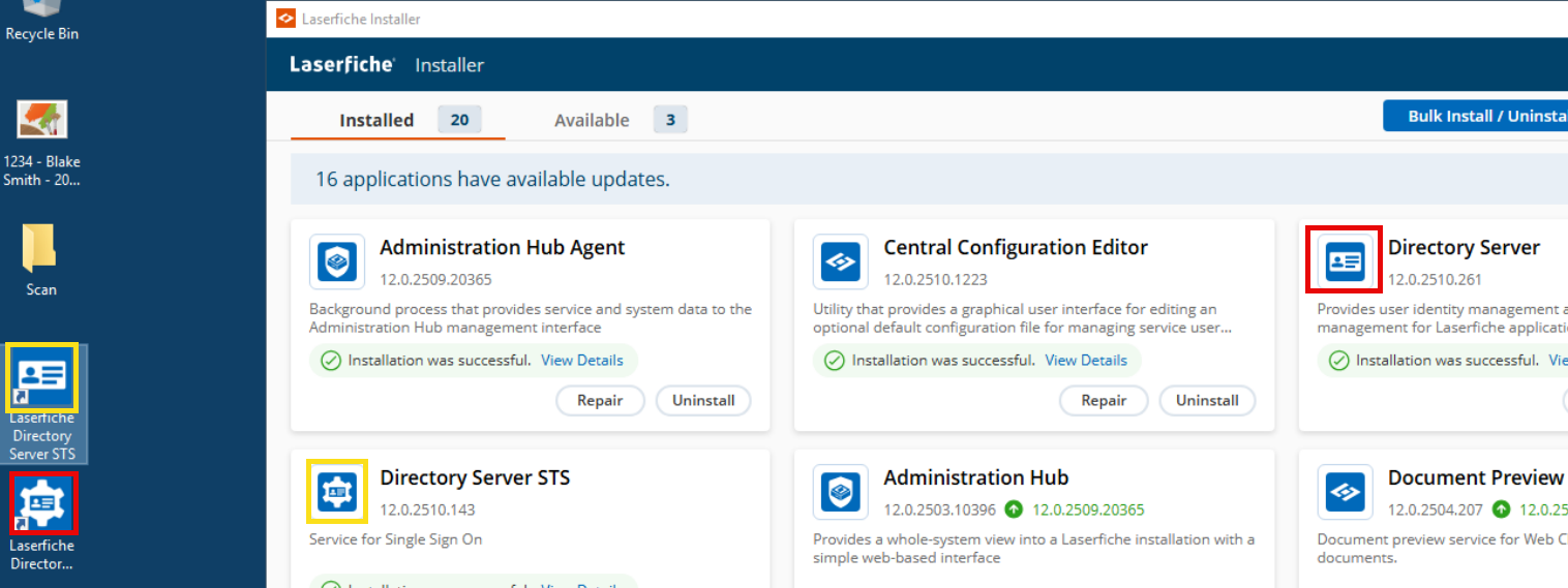 In the Laserfiche 12 Fall 2025 release, the icons for LFDS and LFDSSTS don't match their counterparts in the Laserfiche Installer.