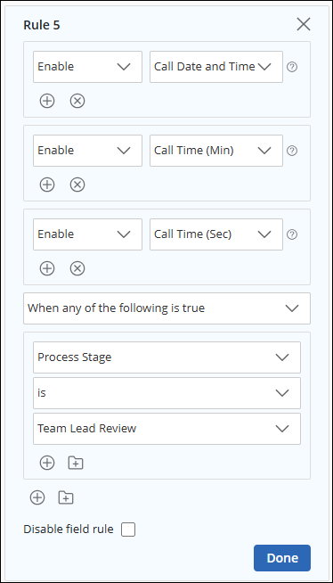 I have a Field Rule that is enabling three fields (two number fields and one date/time field).