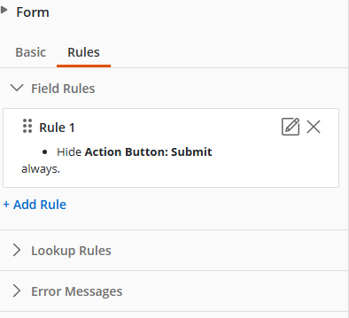 In the Forms Designer you can create a field rule to hide specific action buttons, but it would also be nice if there was a single option to hide all option buttons so you didn't have to select each one.