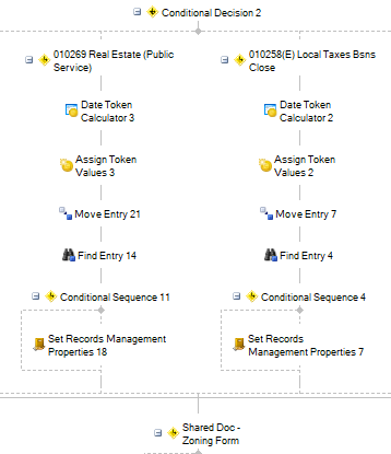 Next, we are looking to see, based on document type identified by a field in the repo, which retention classification it falls into, creating date tokens, routing it to a folder, and updating records management properties accordingly,