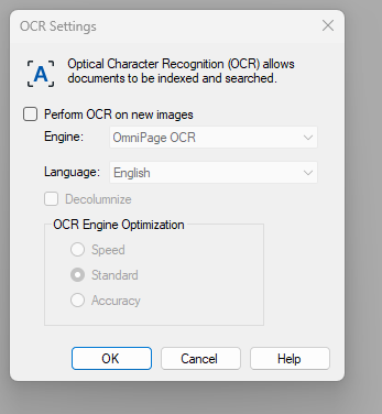 We are uploading scanned documents into the LF Cloud repository. We are using Laserfiche Scanning Basic mode. We don't have the Perform OCR on new images checked.