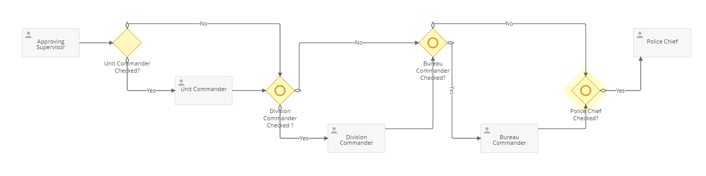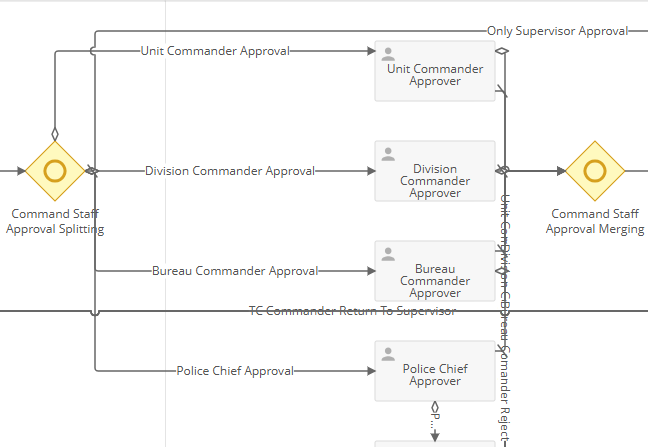 The way I have the diagram structured, everyone is assigned a task at the same time, and the process will wait until all approvals have been completed. What I need to do is have the approvals done one at a time, so check if the box is checked and if it is assign the task. When the task is completed, check the next box and if it is checked assign the task, and so on. Any help would be appreciated. Thanks!