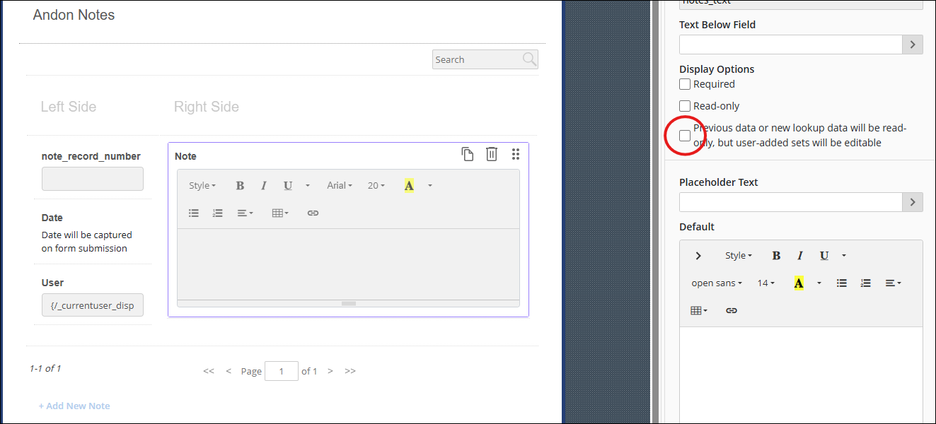 I have a Rich Text field inside a collection. I can mark the setting for "Previous data or new lookup data will be read-only, but user-added sets will be editable" on the field and it will save and store properly. But the very next time I edit the form, the field becomes unchecked, and if I don't resolve it before saving again, the field is no longer read-only the next time a user utilizes the form.