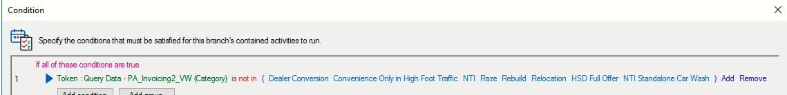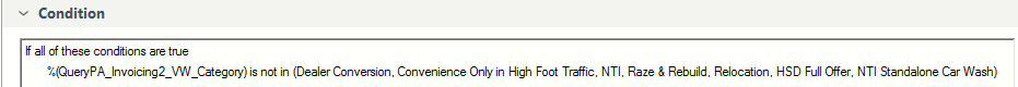 When using the condition editor in Workflow and using the "is not in" or "is in" conditions, it would be great if it showed commas in-between each value to make it easier to read. It would also be nice if it showed special characters. This is what I am seeing in the editor: