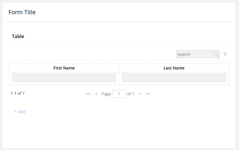 A form contains a Forms Table with multiple items (each row represents one item).