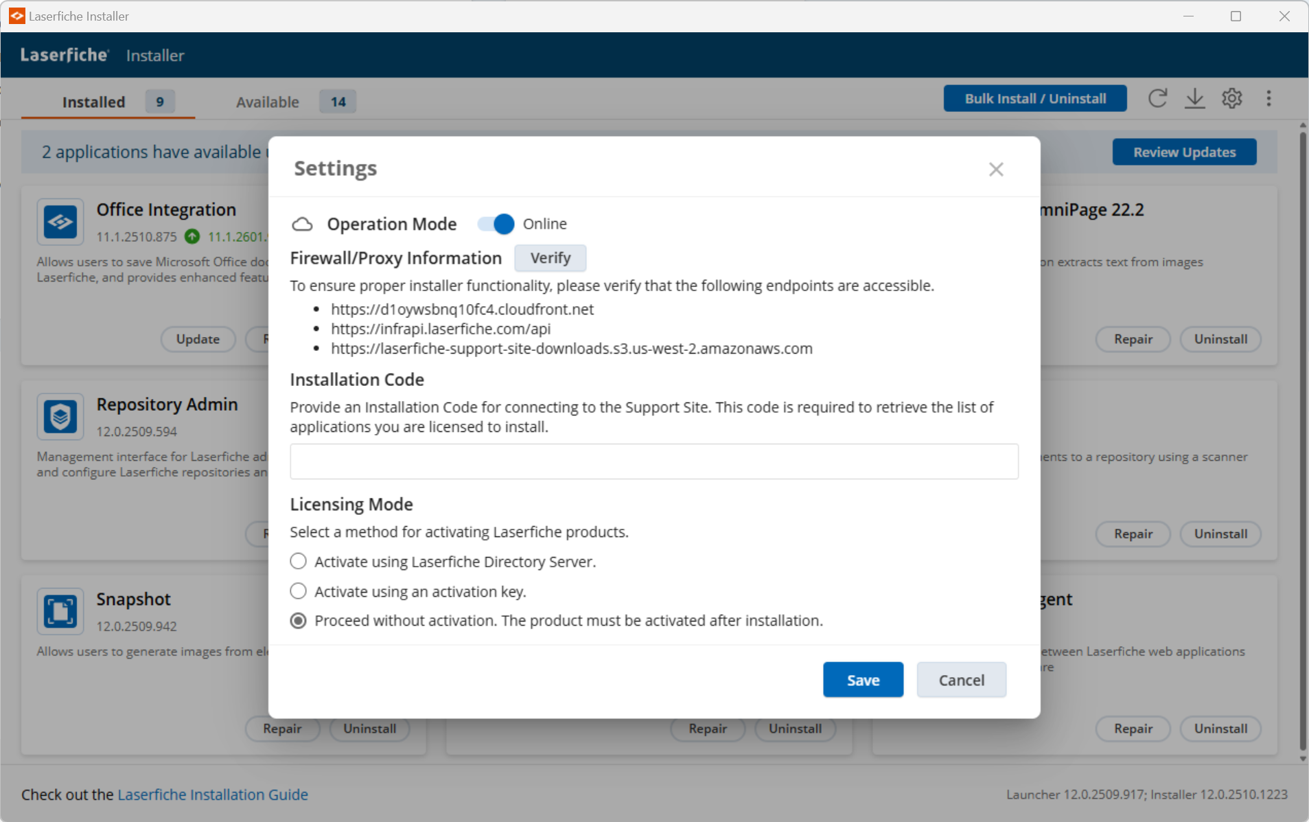 We currently have Laserfiche 12 installed on a server that has been isolated from the internet since May 2025. We are planning to update the installation to the latest available version of Laserfiche 12.