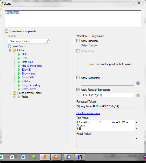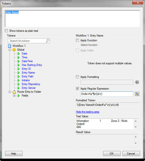 I am trying to get a reg exp to pick out the 666 but can not get it to get beyond the CR/LF The expression is Order#\s*(d+). As I type this in the test field of QF the result value is seen as I type the exp...Order#\s* all good to this point, but when I type 6 it will not display.