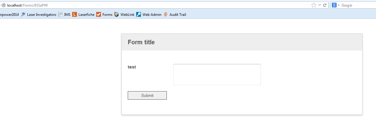 It is not an error per say, form's URL: http://localhost/Forms/8SSaP,