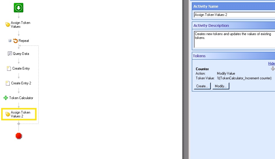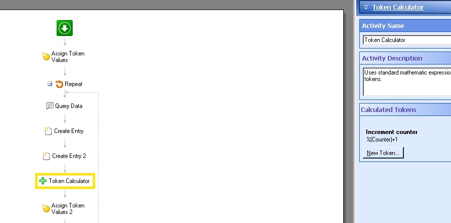 All of that besides the first creation of the counter variable is inside a Repeat.  Just for testing the condition on the repeat is just if %(Counter) is less than 100.  Don't need to do them all for testing.