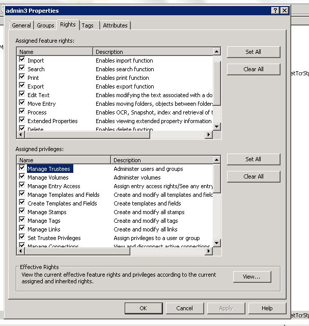 Unfortunately I tried that earlier, and to be sure i just attempted it again. with a new admin user, with full rights. Attached are snips of what settings i have.