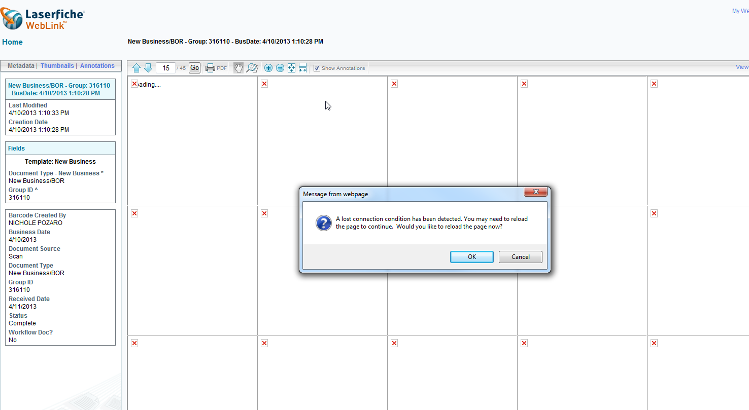 | WebLink | Users may run into a "lost connection has been detected" or "too many connections" error when accessing a WebLink site installed on a Windows XP machine. Increasing the limit IIS allows will fix this issue. This happens more often when using Internet Explorer 8 (46685). |