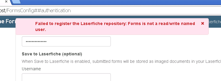 - Enter the credentials that Laserfiche Forms will use to access the Laserfiche Server. Please note that: