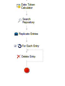 I've built a workflow for a client that will grab documents older than 3 years and move them into an archive repository, then delete the original document. (See attached image).