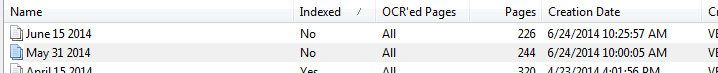 We then OCRed the file from Client 9.1.1. No change in the indexed column (still says "No"), however, we could now complete the search and were able to find text on a page. Same search we had done before we OCRed.