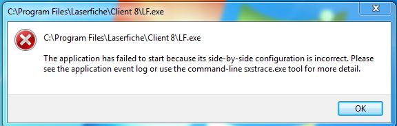 attempting to launch Laserfiche 8.3 sp2 this error message comes up immediately: