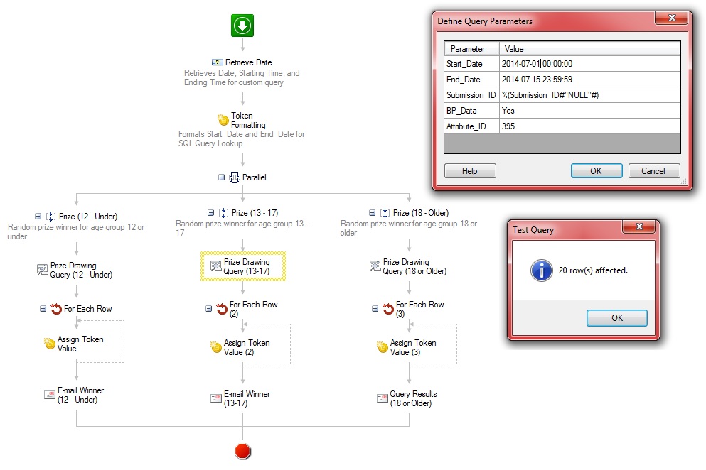I have a custom query that returns 20 rows. The query is a random-prize drawing that will return random results each time it is run. I need to convert the data in in row on a specific column to a multi-valued token. I am trying to use the For Each Row activity in Workflow to help me accomplish this. However, I can seem how to figure out the Assign Token Value activity to create and add a new value each time the activity loops for each query value returned. Any ideas or help would be great! Thank You.