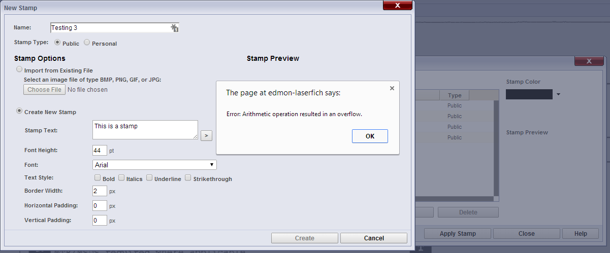 When creating a stamp with Laserfiche 9.1 users receive this error