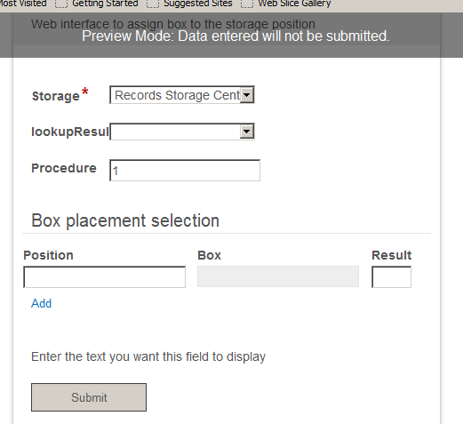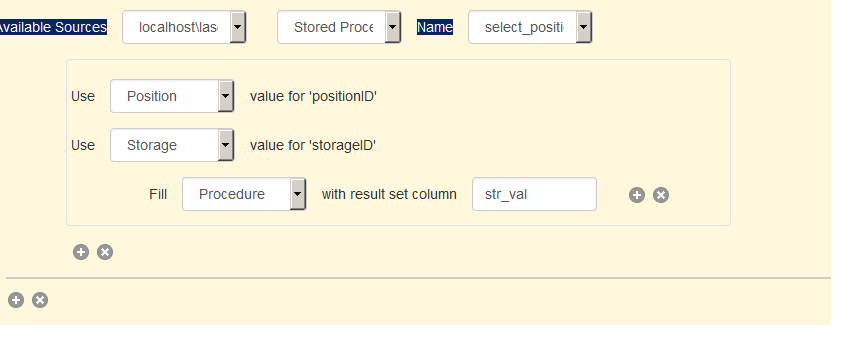 Where storage is preset drop-down list with three values and position - one of the table columns and procedure is a result field.