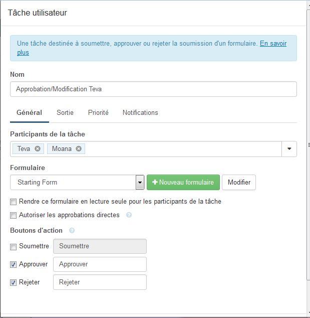 2. Have the form sent to the user for approbation in "My Tasks".
