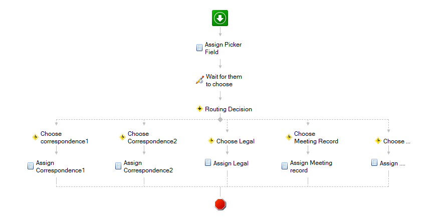 Has anyone already designed a workflow that would help staff decide which template to choose on a new document? If so, would they be willing to share their design?