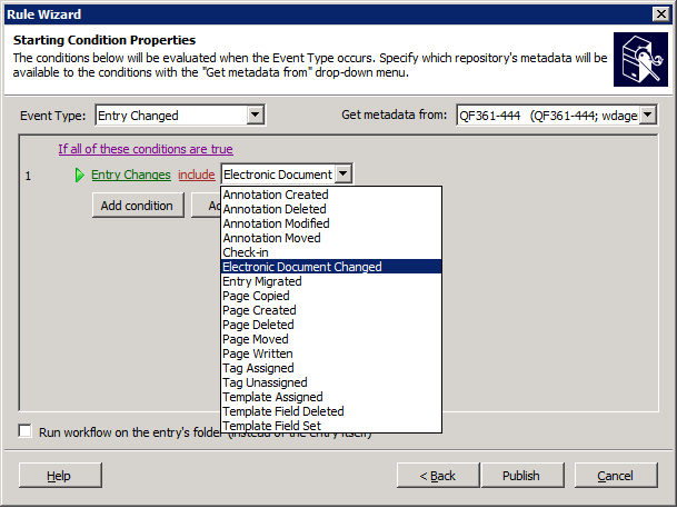 It's not possible to query the reason before starting the workflow. However, you could have the workflow start from an entry changed event that includes changing the electronic document.