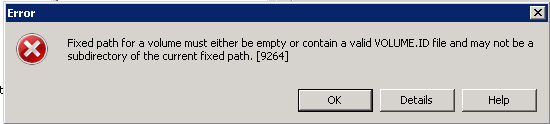 This issue could be the result of several different things, but the first thing I would check is that a volume.id file exists in the volume's directory. If not, check this link for instructions. Please respond once you have checked if the volume.id file exists/re-created the file, if necessary, to let us know if the issue persists.