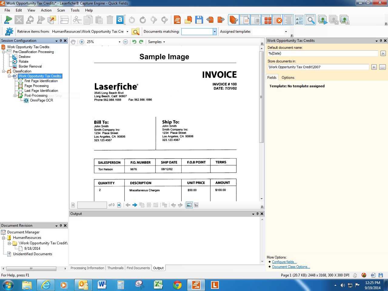 Oh, okay.  So, I moved the OCR process to the post processing stage.  Now, this process should take place when it is sent to the repository as shown?  And. . . leave QF open?  Correct.  Any step I'm missing out on?