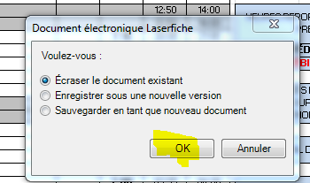 Can you set focus on the Ok button at the "Document électronique Laserfiche" dialog window ? It'll be more user friendly.