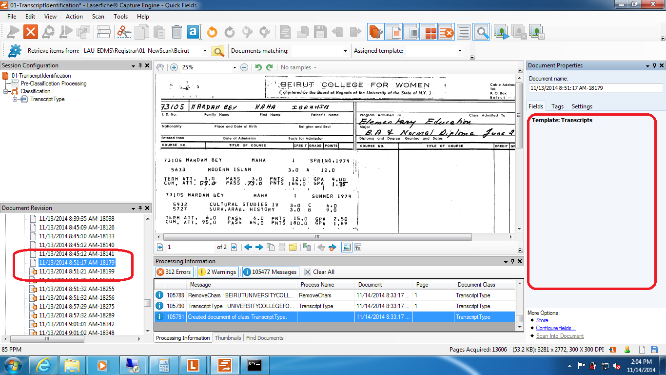 I was correcting fields in a Quick Fields session and I think I pressed Ctr-E or something like... and the Template fields disappeared in Document Properties in QuickFields
