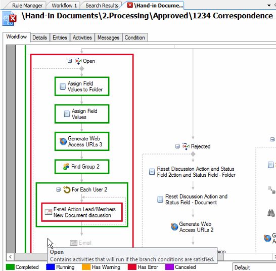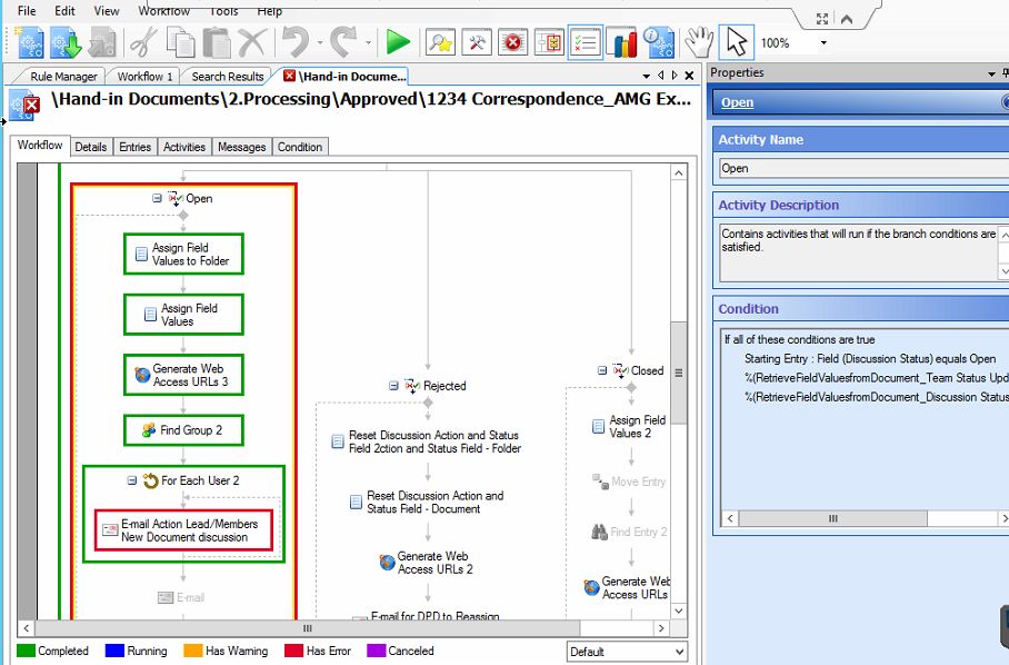 After the document is approved . It suppose to be open for discussion and all the invitee's should be receiving the mail. But it is not send out the mail. I had attached where the workflow stuck . kindly assist plz