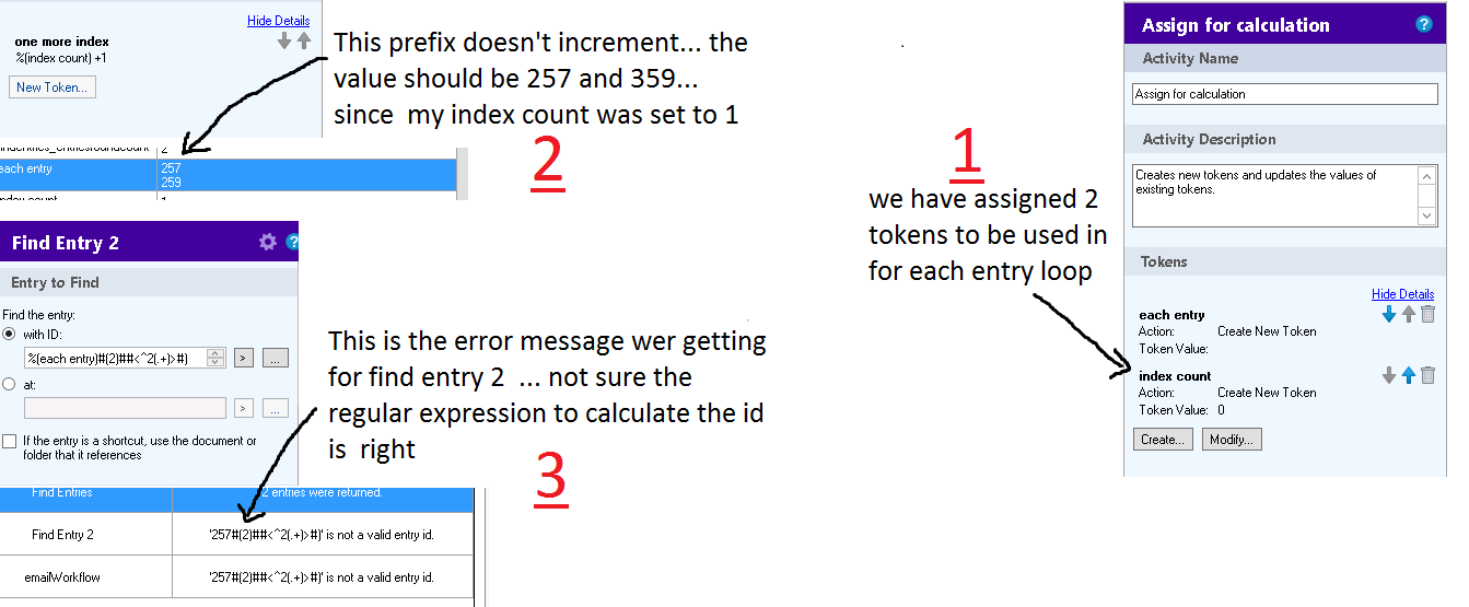 Since the Token Calculator is not naming the entries correctly, the Find Entry (and Find Entry 2, etc.) won't find a match. You also must put the Find Entry activities within the conditional sequence. You don't want to run X number of Find Entry activities if you don't have to. If you nest the Find Entry with the conditional sequence, it only Finds the Entry if there is one there. Here is what my conditional sequence rules look like for Index 2: