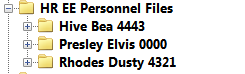 Folder structure of the HR root folder. Each employee folder within HR EE Personnel Files has the HR Employees Folder template attached.