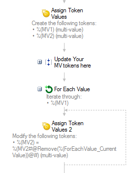 I think a better approach would be to use the For Each Value activity paired with some conditional activities and an Assign Token Value activity... but their usage depends on what you are trying to do.