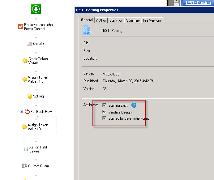 I have this workflow kick off by a Laserfiche Form (by a 'Task' in the Process Modeler).
